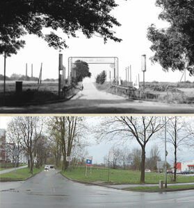 Przejście graniczne z polskiego Orzegowa do niemieckich Szombierek. Jadąc w stronę Szombierek mijamy zachowany do dziś ten drugi budynek (powyżej) dawnego posterunku niemieckiej straży granicznej .