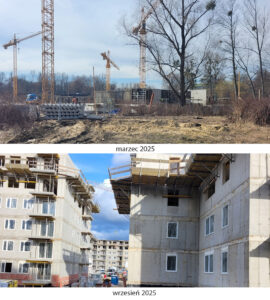 W marcu tego roku ujrzeliśmy ledwie nad ziemią zarys parteru jednego z pięciu powstających budynków przy ul. Ziętka. Minęło pół roku i efekt musi robić wrażenie. Poszczególne budynki doszły lub dochodzą do ostatecznego pułapu 7. piętra. W międzyczasie wstawione zostały okna, na dobre trwa też ocieplenie budynków styropianem. Tempo prac trzeba przyznać imponujące!