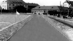 Zanda -lata 60. Dziś teren na którym znajduje się szkoła podstawowa nr 6 .Na pierwszym planie fragment boiska z bieżnią .W tle ośrodek zdrowia ,,Tegramed ” oraz budynki znajdujące się przy ulicy Piasecznej. Boisko , którego nawierzchnia nie była najlepszej jakości , tak delikatnie to ujmując cieszyło się w latach 60-80 spory powodzeniem .
