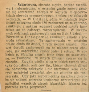 Szkarlatyna na początku XX wieku na Śląsku była bardzo groźną chorobą zakaźną o wysokiej śmiertelności , zwłaszcza u dzieci  z powodu braku skutecznego leczenia .Nie były wtedy jeszcze dostępne antybiotyki.