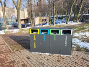 – Zakup  i zamontowanie  koszy na śmieci do segregacji odpadów.