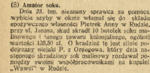 Trzeba koniecznie kiedyś zebrać te wszystkie wycinki z gazet ,z informacjami dotyczącymi różnego rodzaju wykroczeń i przestępstw jakie miały miejsce w Orzegowie lub odbywały się  z udziałem naszych mieszkańców. Wachlarz ,,dokonań” jest niesamowity. Poczytny autor powieści kryminalnych mógłby tu czerpać garściami. To się kiedyś tu naprawdę działo .