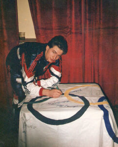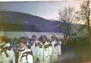 1992 rok.Ekipa polska tuż przed rozpoczęciem Igrzysk w Albertville. Jerzy Sobera w środku obok Mariusz Czerkawski)