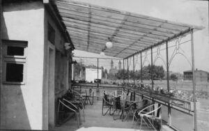To co prawda ujęcie zrobione od przeciwnej strony, ale to właśnie w tym miejscu gdzie kiedyś było zaplecze kąpieliska , z szatniami , ubikacjami i kawiarenką dziś znajduje się jeden z parkingów nowego osiedla .