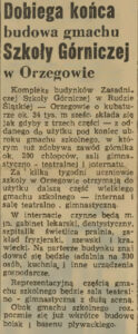 Artykuł prasowy z 1954 roku potwierdza, że to w tamtym roku ukończono budowę kompleksu budynków wchodzących w skład Zasadniczej Szkoły Górniczej od wielu lat znanej jako IV liceum Ogólnokształcące.