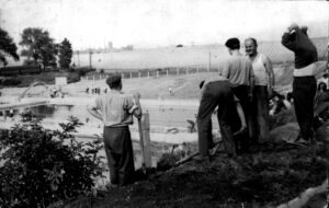 Rok 1962. Powstaje orzegowskie kąpielisko. Miejsce dziś nie do poznania. Tam gdzie znajdował się basen stoi obecnie 5 nowych bloków mieszkalnych. Na uwagę jednak zasługuje również otwarta przestrzeń w tle, dzięki czemu widoczny jest m.in szyb Krystyny w Szombierkach. Od 40 lat stoi na całej powierzchni widocznego, wtedy niezabudowanego terenu – osiedle Powstańców Śląskich.